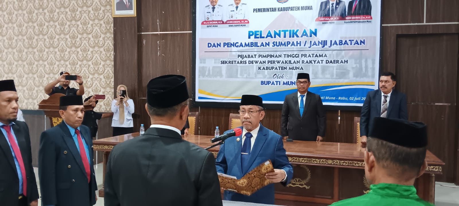 Untuk diketahui pelantikan dan pengambilan sumpah/Janji Jabatan Pejabat Pimpinan Tinggi Pratama Sekretaris Dewan Perwakilan Rakyat Daerah Kabupaten Muna disaksikan juga oleh Wakil Bupati Muna, Ketua DPRD Muna, para Kepala OPD serta sejumlah Kades.