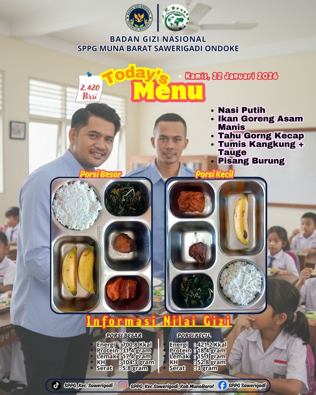 Tak hanya itu, SPPG Sawerigadi tetap berpacu sesuai juknis yakni komitmen memanfaatkan bahan pangan lokal. Namun jika tidak ada bahan baku di Kabupaten Muna Barat maka pihaknya mengambil ke kabupaten lain.