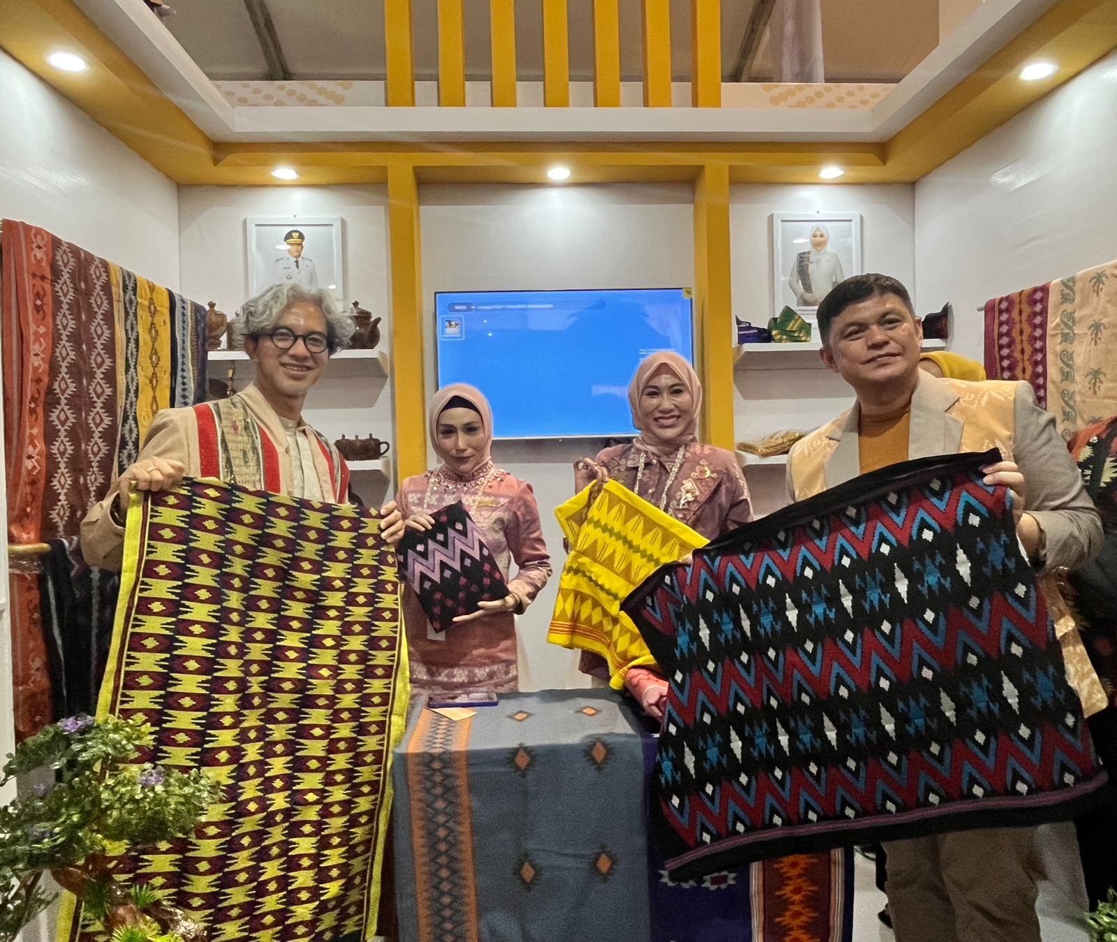“Ini pajangan di stand Dekranasda banyak yang terjual, tadi juga mas Didiet Maulana turut membeli tenunan motif kepiting berwarna orange dan coklat,” ujarnya.