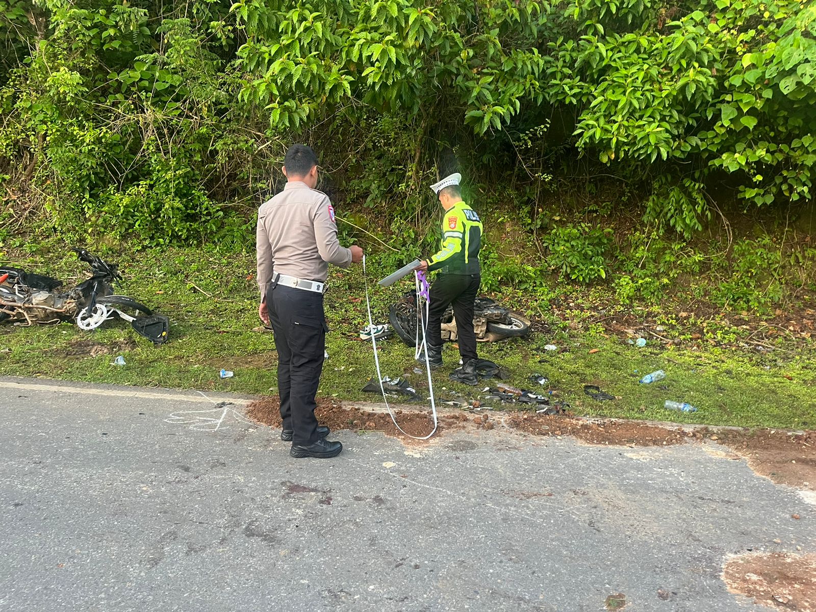 Saat motor yang dikendarai S hilang kendali langsung bertabrakan dengan sepeda motor Suzuki Shogun warna hitam bernomor polisi DT 4874 LD yang dikemudikan oleh LH berboncengan dengan AK.