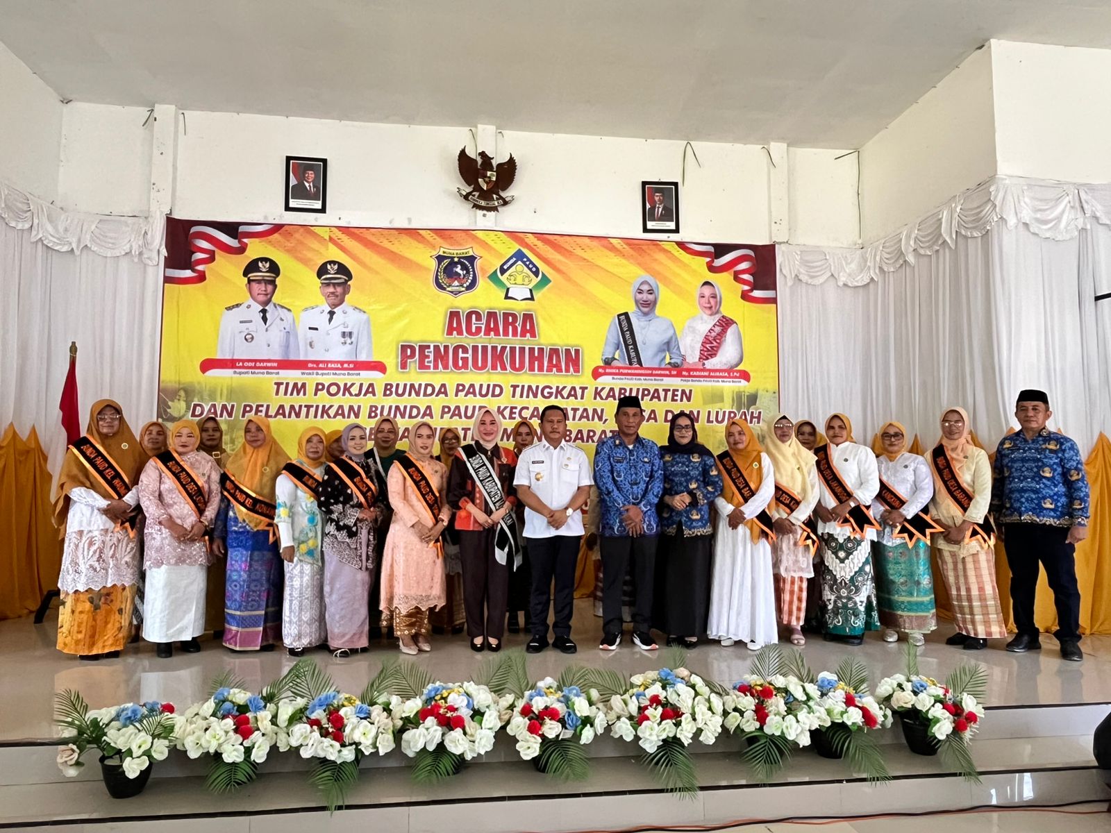 Pelantikan Bunda PAUD tersebut dilaksanakan di Kantor Bupati Kabupaten Muna Barat, yang turut dihadiri langsung oleh Bupati Muna Barat, Pj Sekda Muna Barat, dan seluruh pengurus Bunda PAUD tingkat kecamatan dan desa.