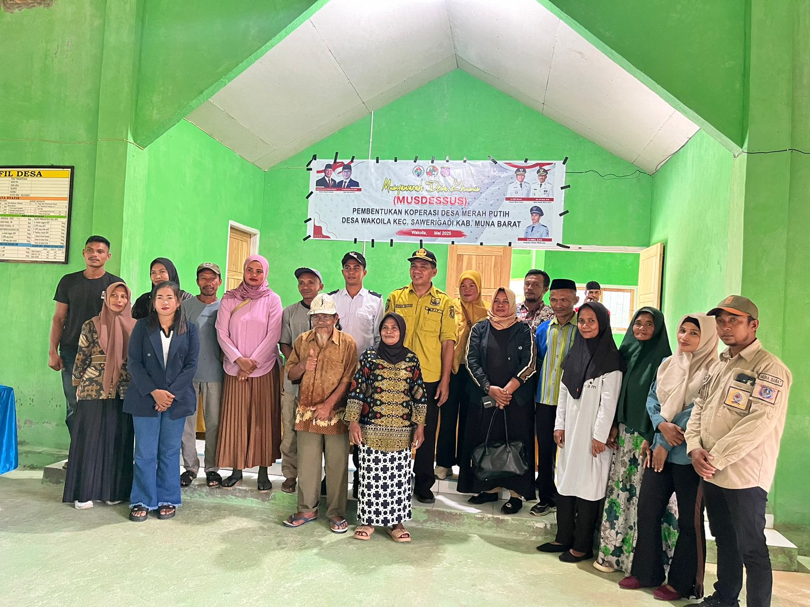 Pembentukan koperasi Merah Putih Desa Wakoila melalui musyawarah desa khusus (Musdesus) yang dihadiri oleh pihak Inspektorat Muna Barat, BPD Desa setempat, serta masyarakat Desa Wakoila. Kamis (22/5/2025).