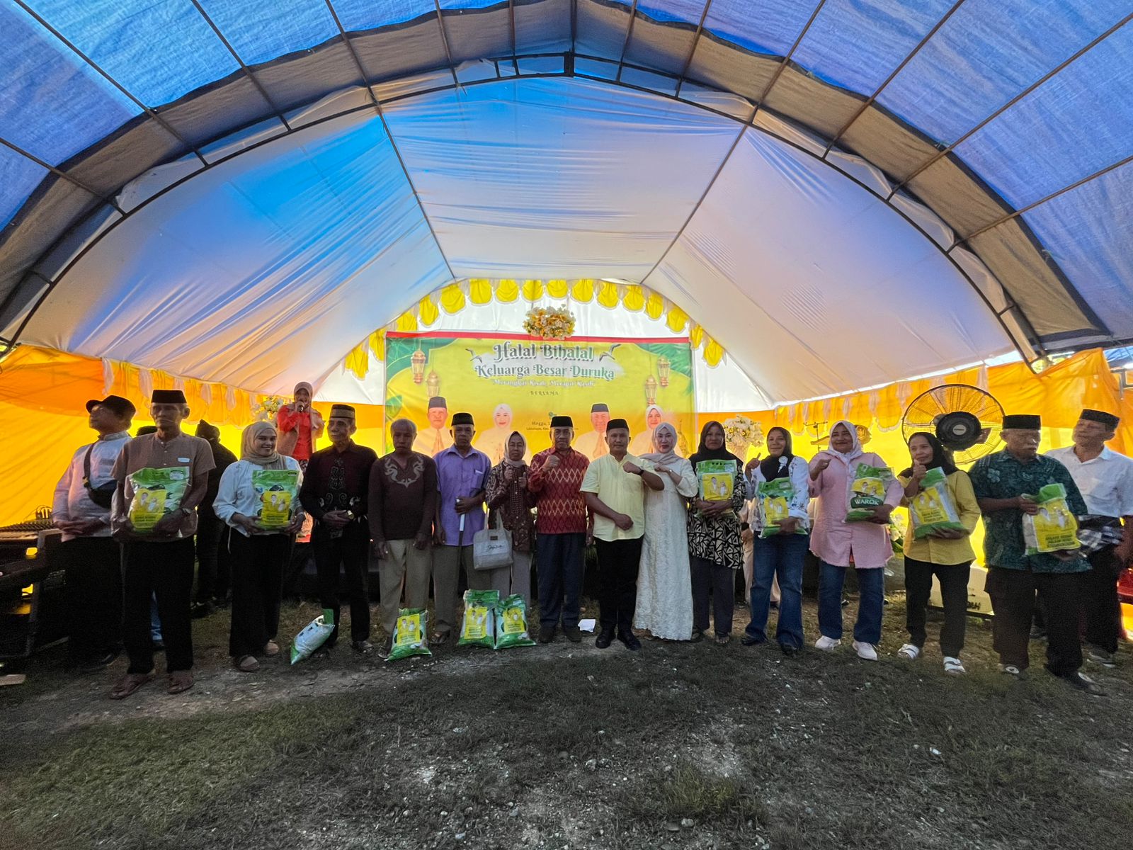Selain kegiatan silahturahmi, Ketua Golkar DPD Sulawesi Tenggara bersama Ketua Golkar DPD Muna Barat turut membagikan beras ke masyarakat sebanyak 500 karung.
